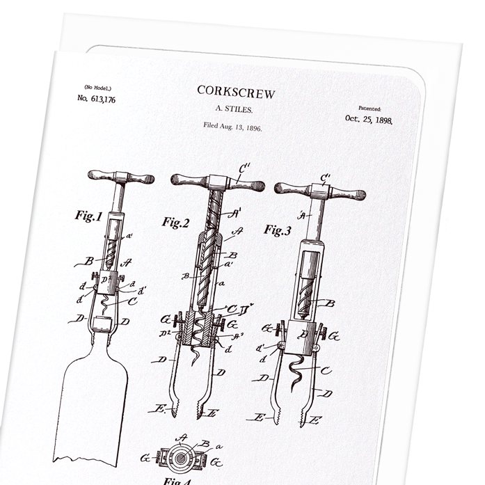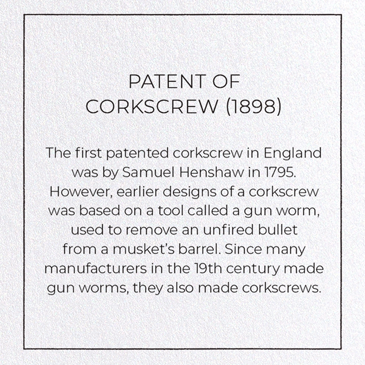 PATENT OF CORKSCREW (1898): Patent Greeting Card