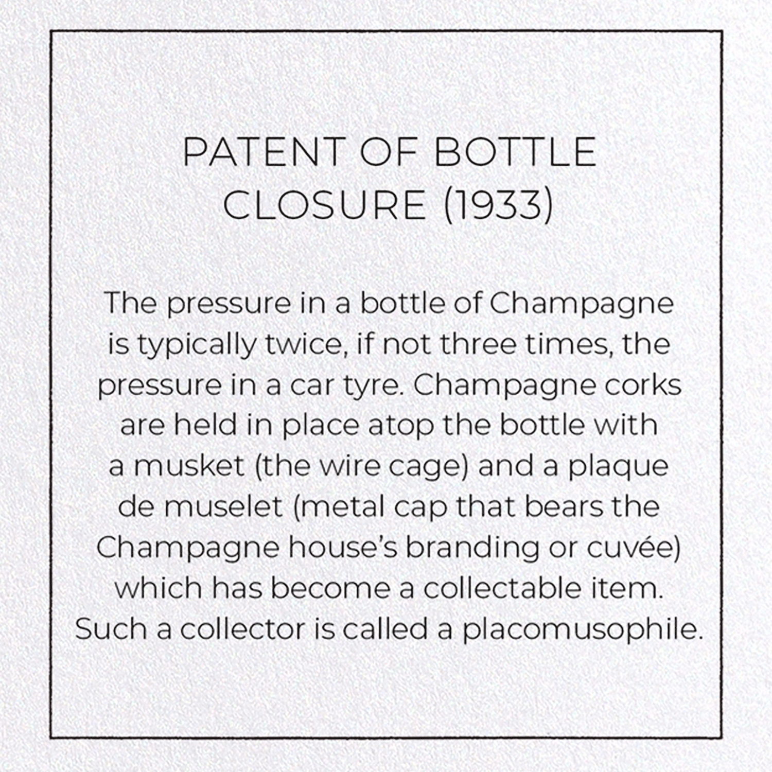 PATENT OF BOTTLE CLOSURE (1933): Patent Greeting Card