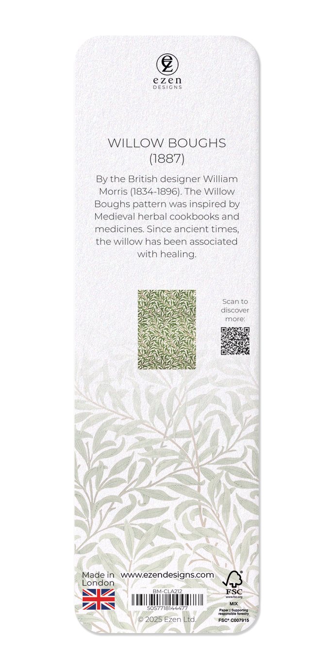 By the British designer William Morris (1834-1896). The Willow Boughs pattern was inspired by Medieval herbal cookbooks and medicines. Since ancient times, the willow has been associated with healing.