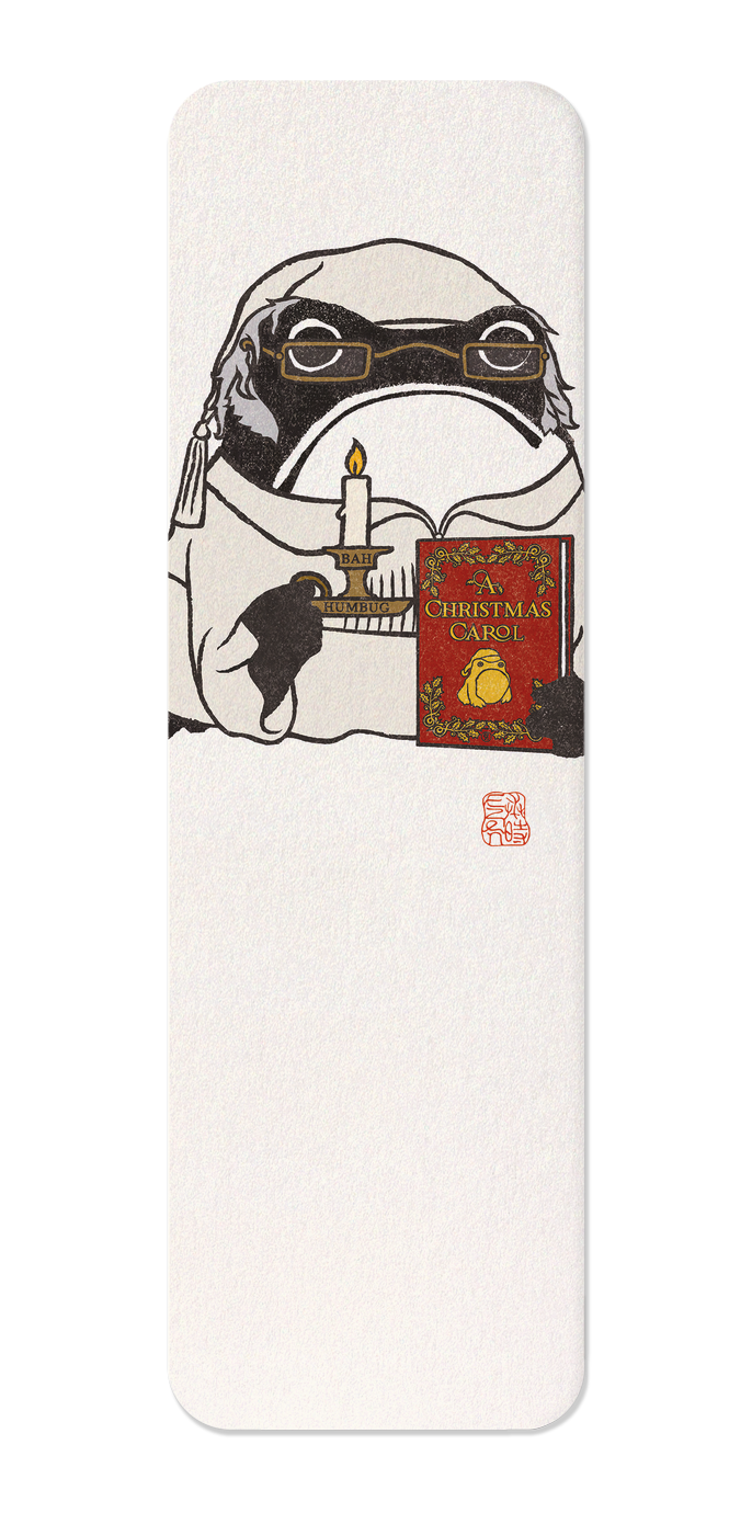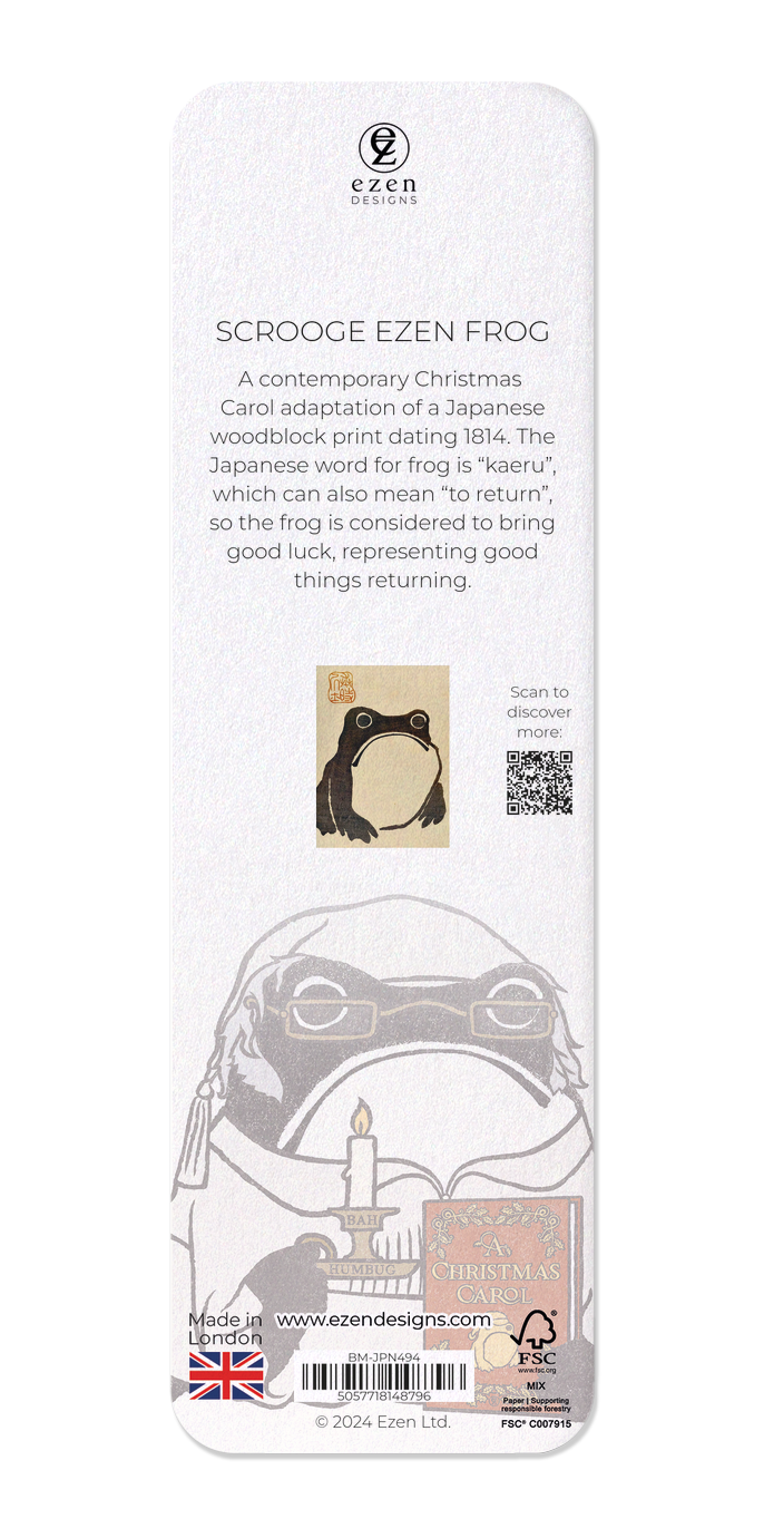 A contemporary Christmas Carol adaptation of a Japanese woodblock print dating 1814. The Japanese word for frog is “kaeru”, which can also mean “to return”, so the frog is considered to bring good luck, representing good things returning.