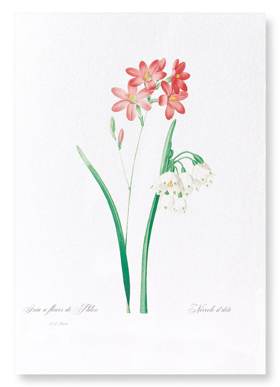 The ixia, often visited by insects and bees, is a flower native to South Africa and is a flower that represents happiness. Illustration by botanist Pierre-Joseph Redouté (1759–1840).