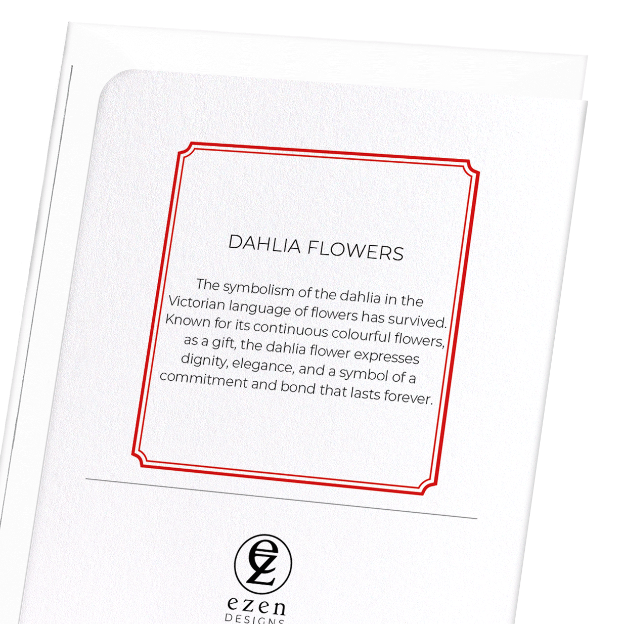 The symbolism of the dahlia in the Victorian language of flowers has survived. Known for its continuous colourful flowers, as a gift, the dahlia flower expresses dignity, elegance, and a symbol of a commitment and bond that lasts forever.