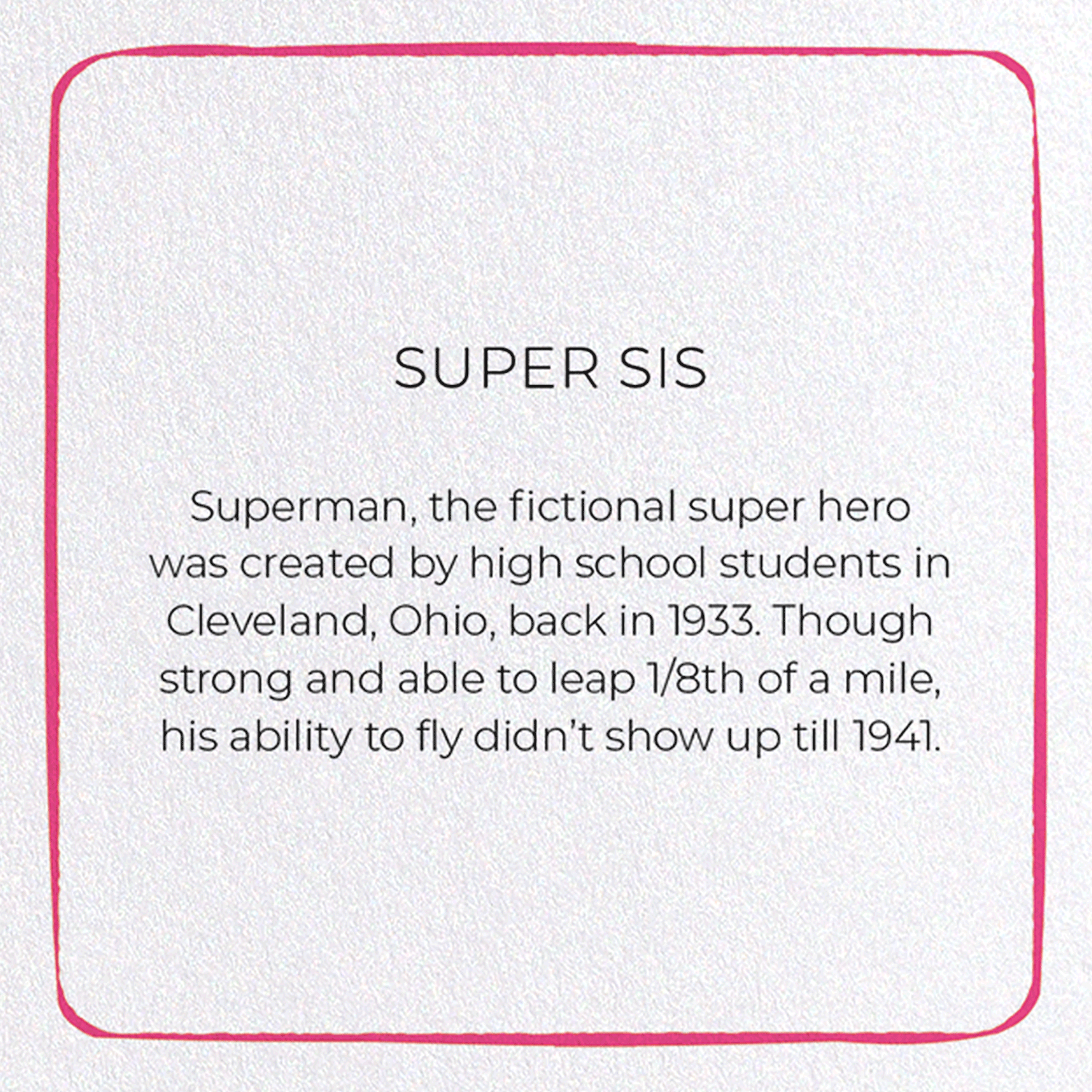 Superman, the fictional super hero was created by high school students in Cleveland, Ohio, back in 1933. Though strong and able to leap 1/8th of a mile, his ability to fly didn’t show up till 1941.