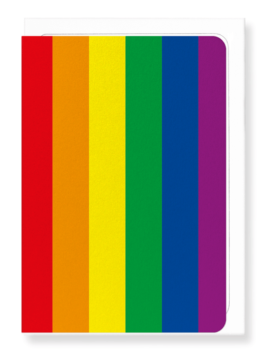 Text on the reverse side: Designed by the artist Gilbert Baker, the original version of the rainbow flag contained eight stripes of colours each ca...