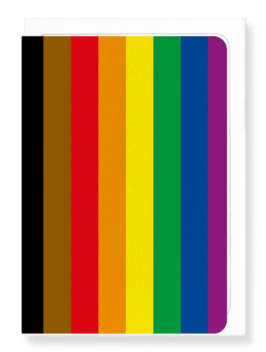 Text on the reverse side: Started in Philadelphia pride, the additional stripes of brown and black was added to the original rainbow pride flag des...