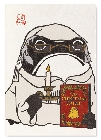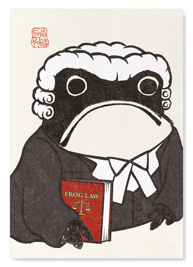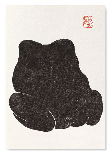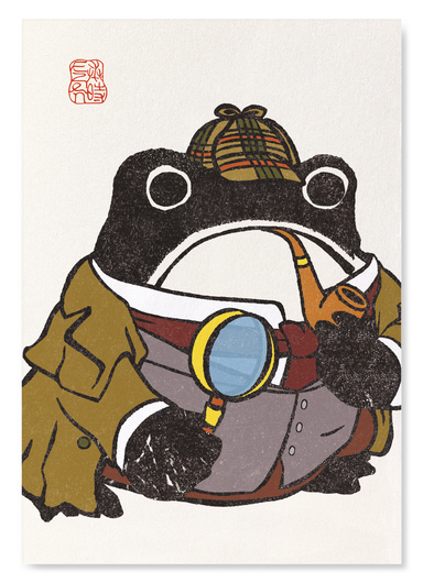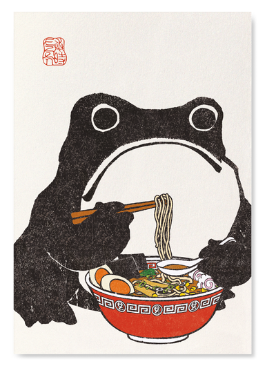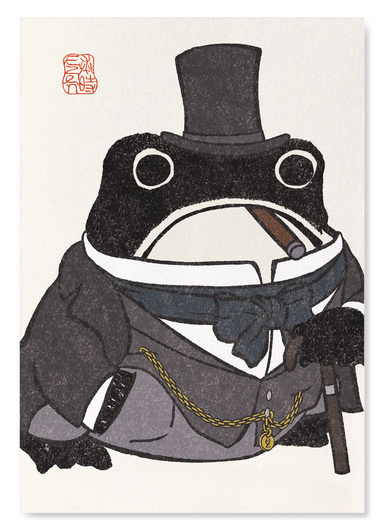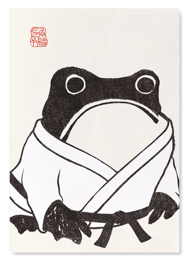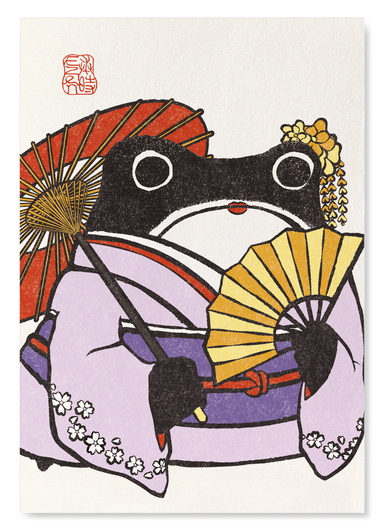 Text on the tag: Image from a woodblock print by Matsumoto Hoji from the "Album of Pictures by Celebrated Artists". The Japanese word for frog is ...