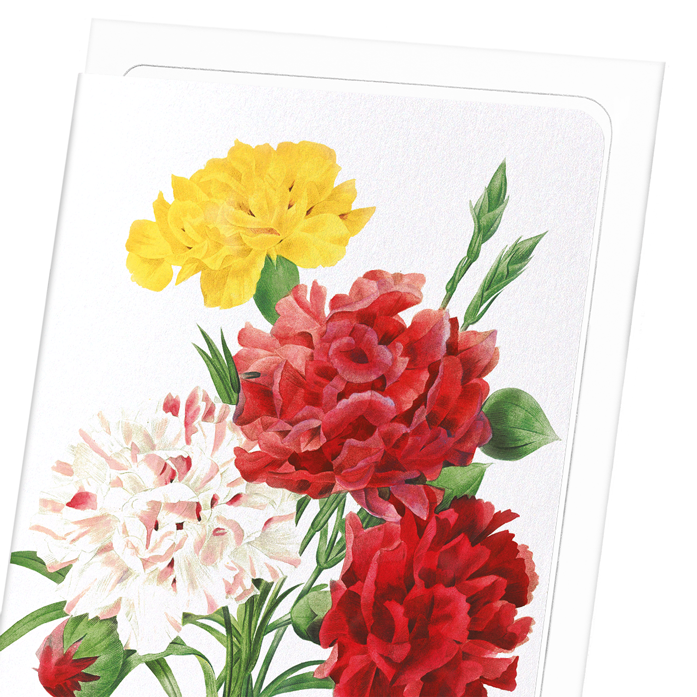 The carnation is one of the oldest cultivated flowers in the world, and its scientific name, Dianthus, comes from the Latin words of "dios" (gods) and "anthos" (flowers). Illustration by botanist Pierre-Joseph Redouté (1759–1840).