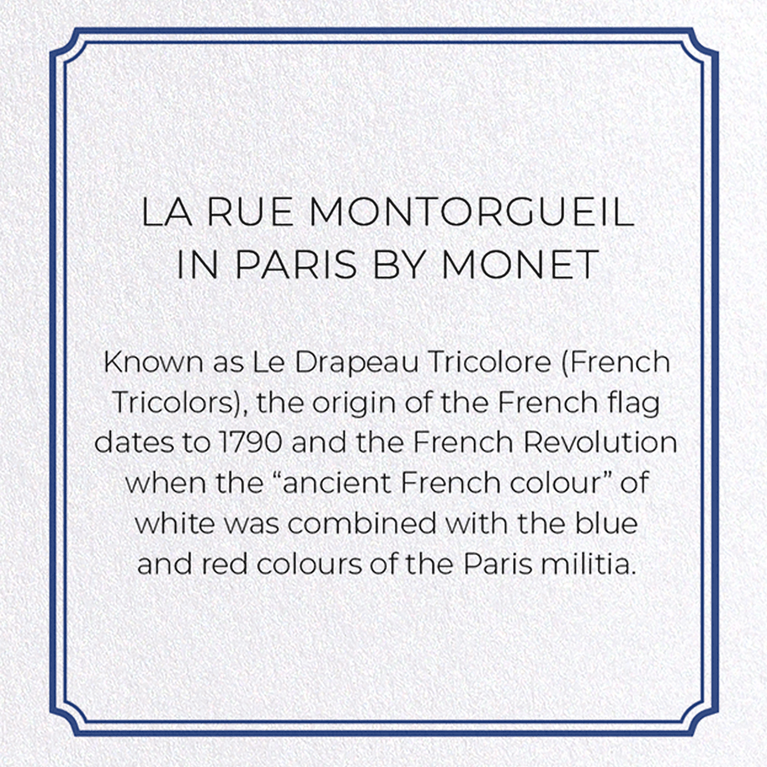 LA RUE MONTORGUEIL IN PARIS BY MONET: Painting Greeting Card