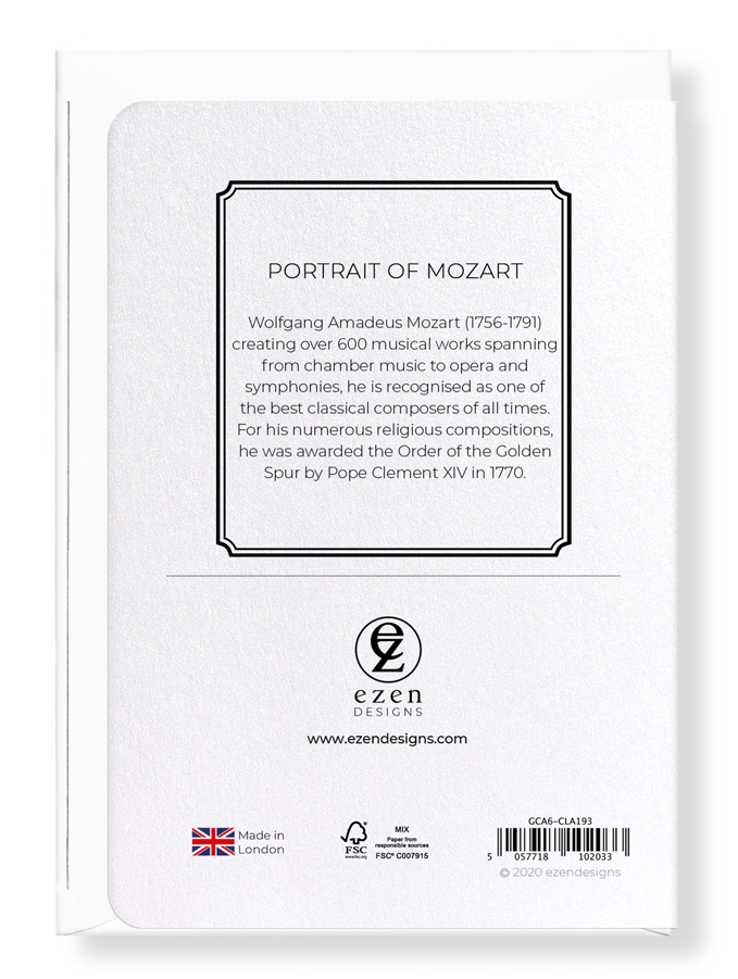 Wolfgang Amadeus Mozart (1756-1791) creating over 600 musical works spanning from chamber music to opera and symphonies, he is recognised as one of the best classical composers of all times. For his numerous religious compositions, he was awarded the Order of the Golden Spur by Pope Clement XIV in 1770.