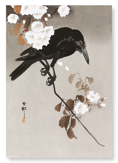 CROW WITH CHERRY BLOSSOM: Japanese Art Print