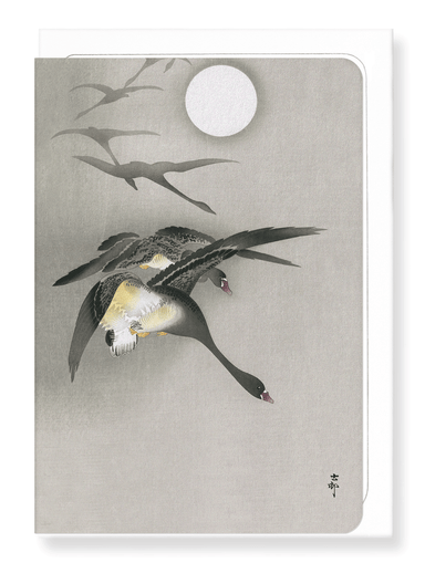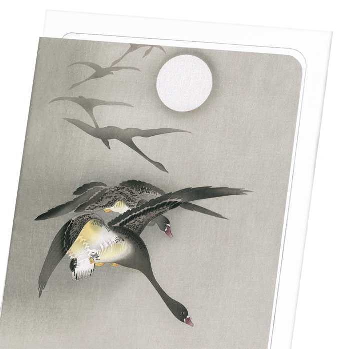 WHITE-FRONTED GEESE IN FLIGHT: Japanese Greeting Card