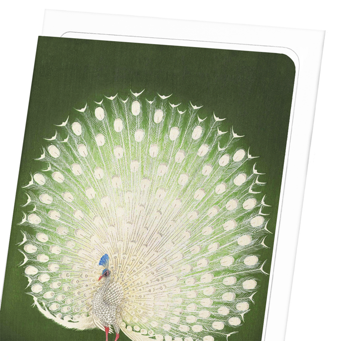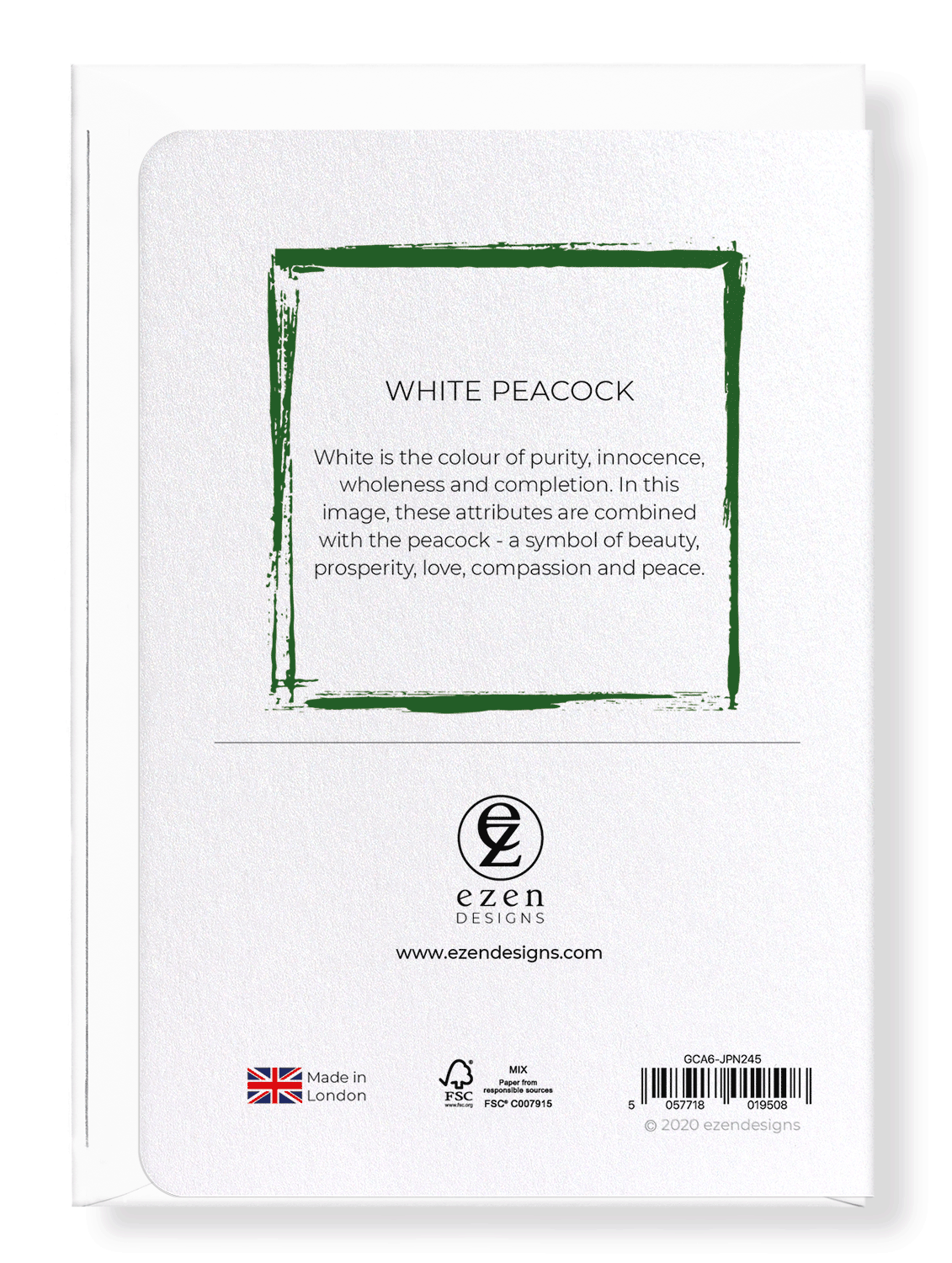 White is the colour of purity, innocence, wholeness and completion. In this image, these attributes are combined with the peacock - a symbol of beauty, prosperity, love, compassion and peace.