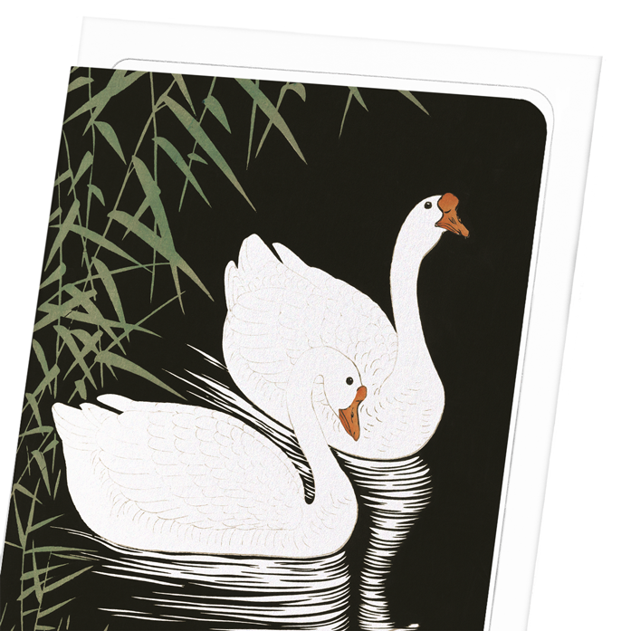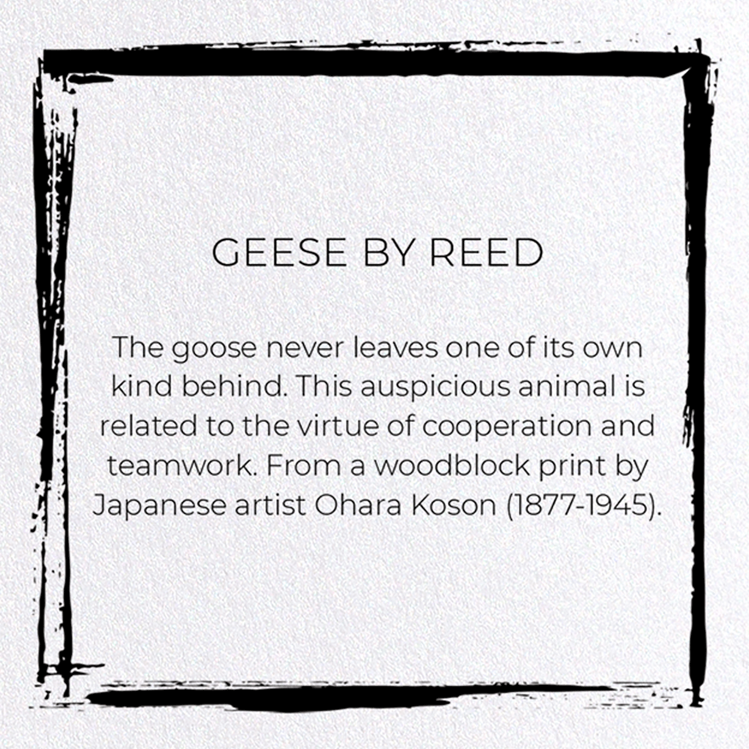The goose never leaves one of its own kind behind. This auspicious animal is related to the virtue of cooperation and teamwork. From a woodblock print by Japanese artist Ohara Koson (1877-1945).