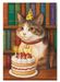 BIRTHDAY CAT AND BOOKS: Painting Art Print