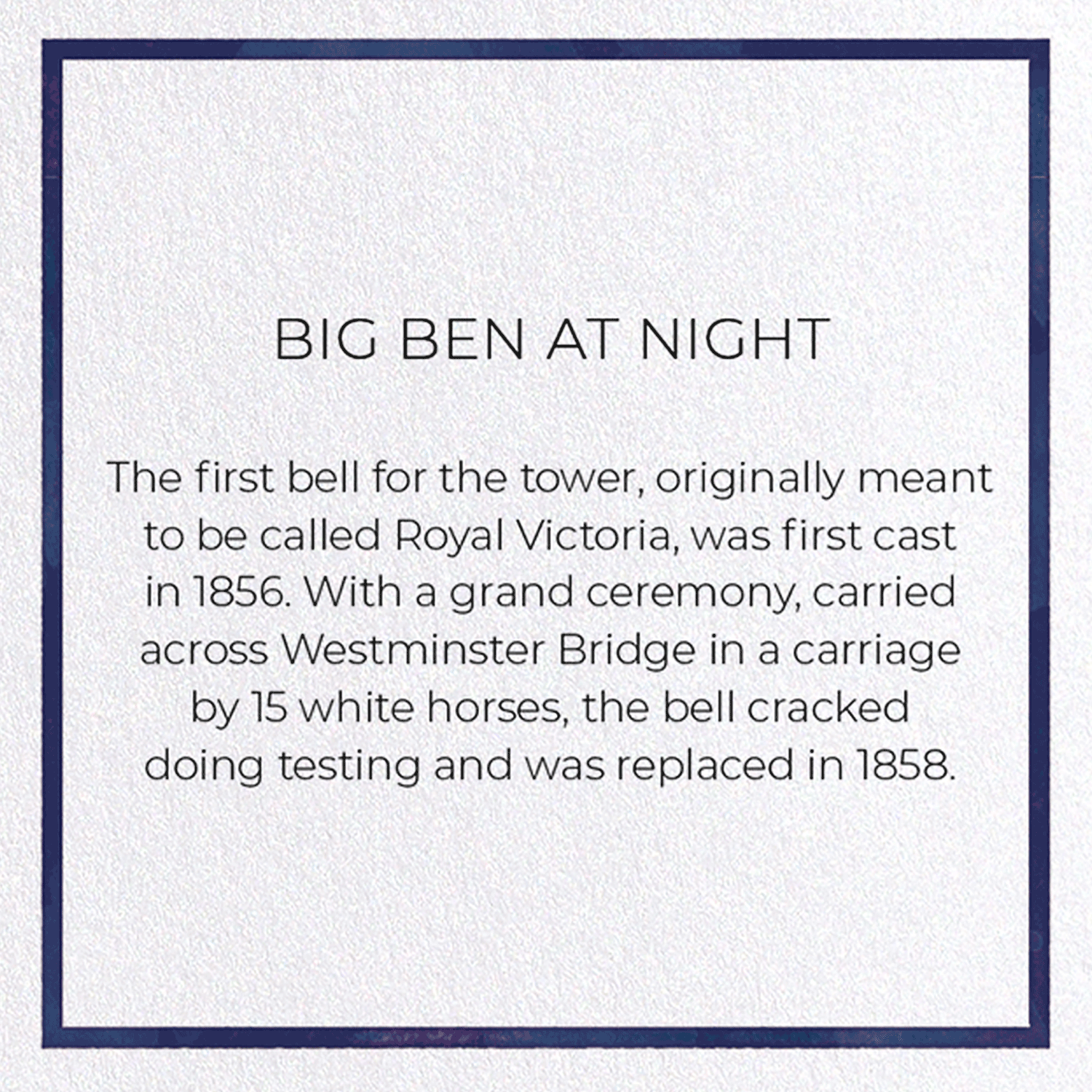 The first bell for the tower, originally meant to be called Royal Victoria, was first cast in 1856. With a grand ceremony, carried across Westminster Bridge in a carriage by 15 white horses, the bell cracked doing testing and was replaced in 1858.