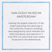 Hosting the largest collection of Van Gogh's paintings and drawings in the world, the museum buildings were designed by Gerrit Rietveld and Kisho Kurokawa, and opened on 2 June 1973. It is one of the most visited museums in the Netherlands.