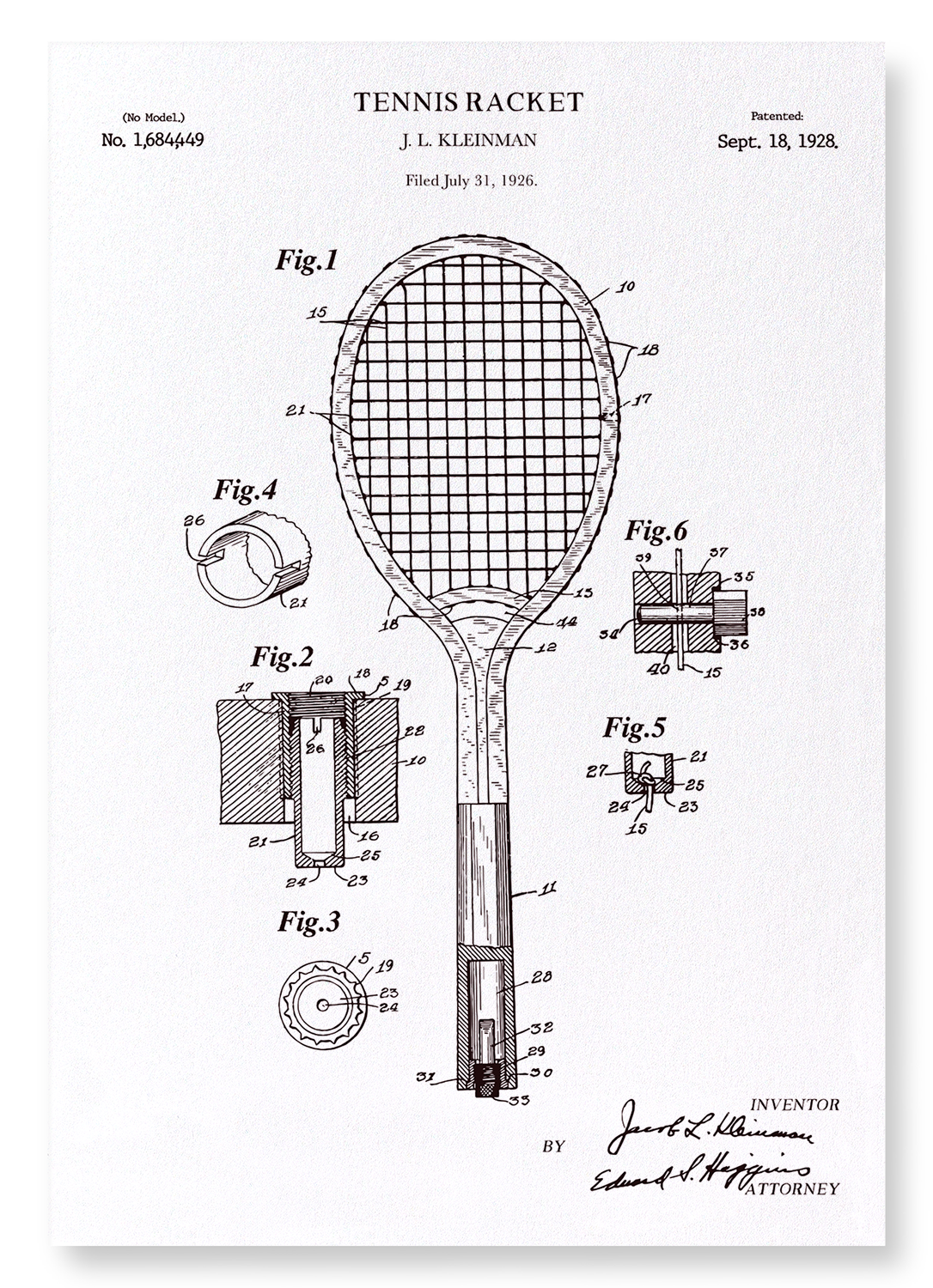 PATENT OF TENNIS RACKET (1928): Patent Art Print