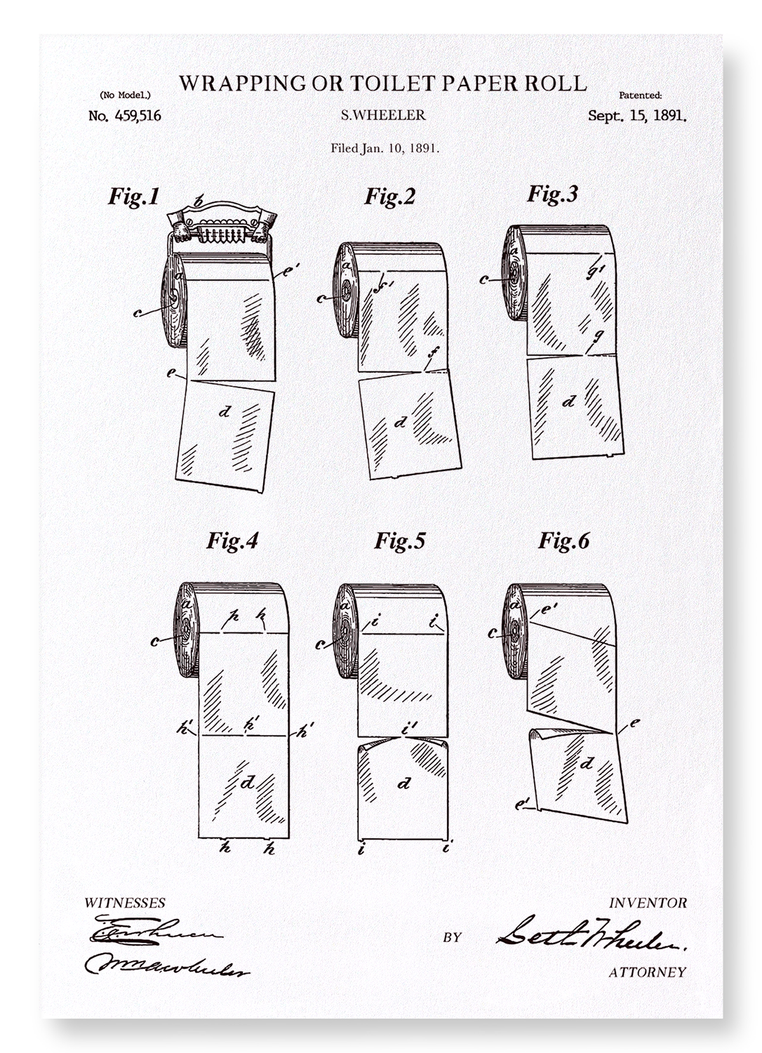 PATENT OF WRAPPING OR TOILET PAPER ROLL (1891): Patent Art Print