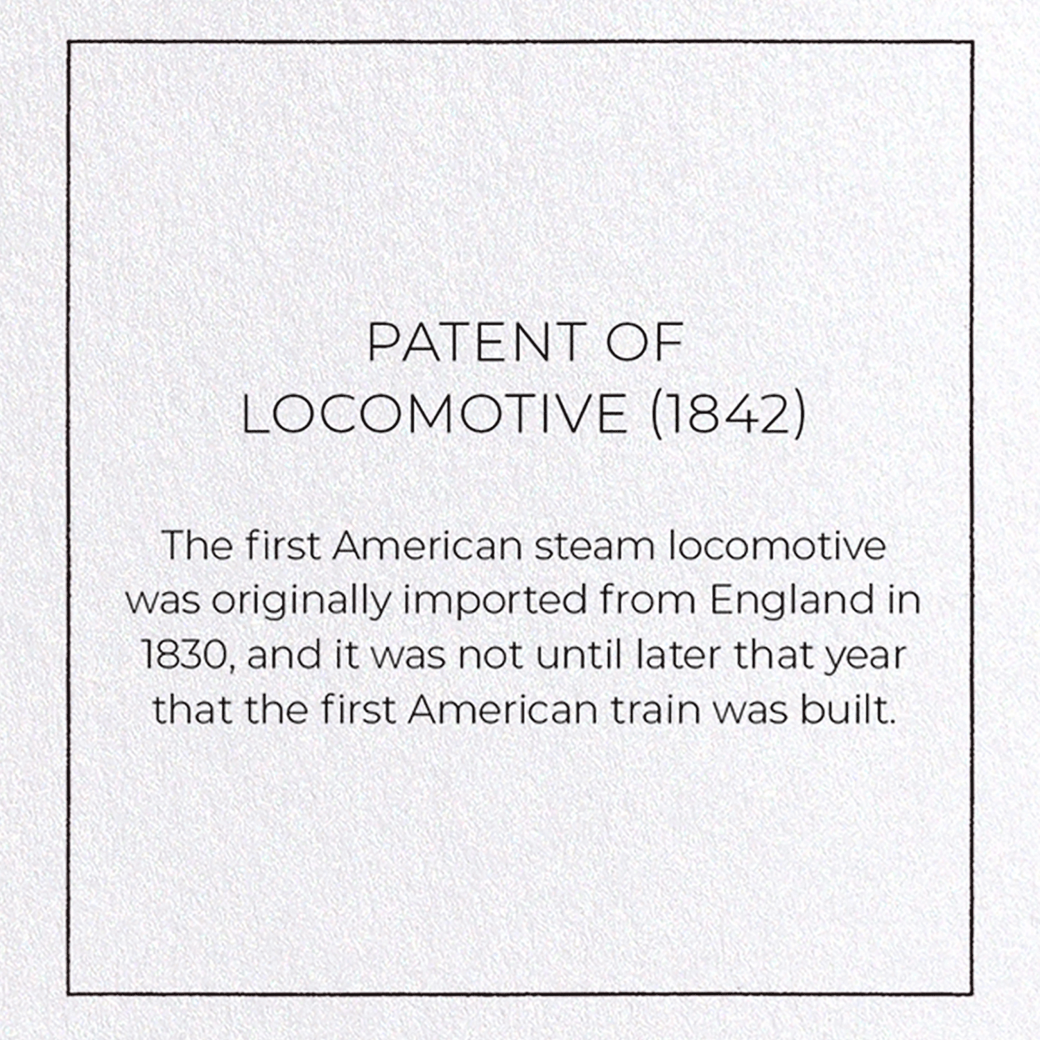 PATENT OF LOCOMOTIVE (1842): Patent Greeting Card