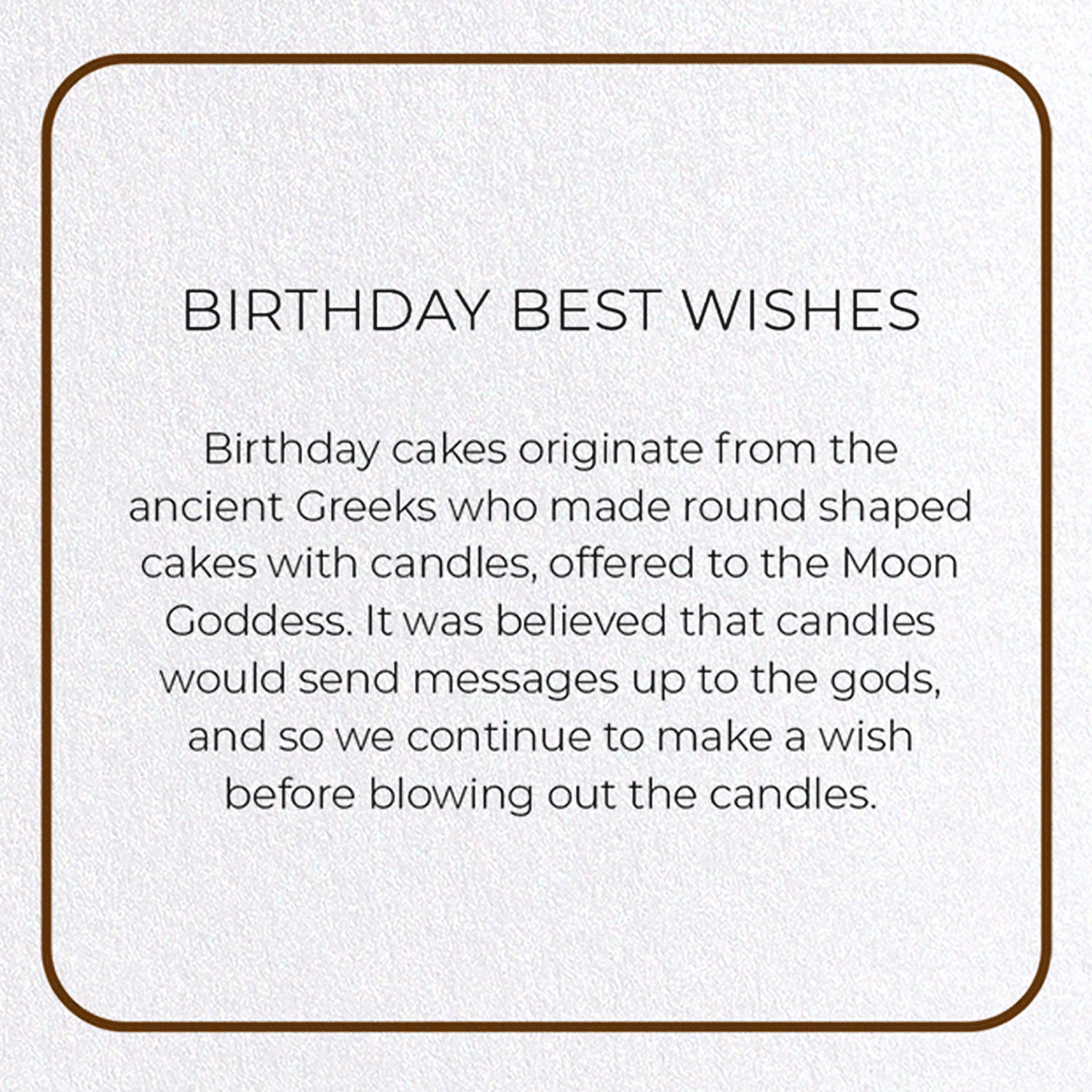 Birthday cakes originate from the ancient Greeks who made round shaped cakes with candles, offered to the Moon Goddess. It was believed that candles would send messages up to the gods, and so we continue to make a wish before blowing out the candles.