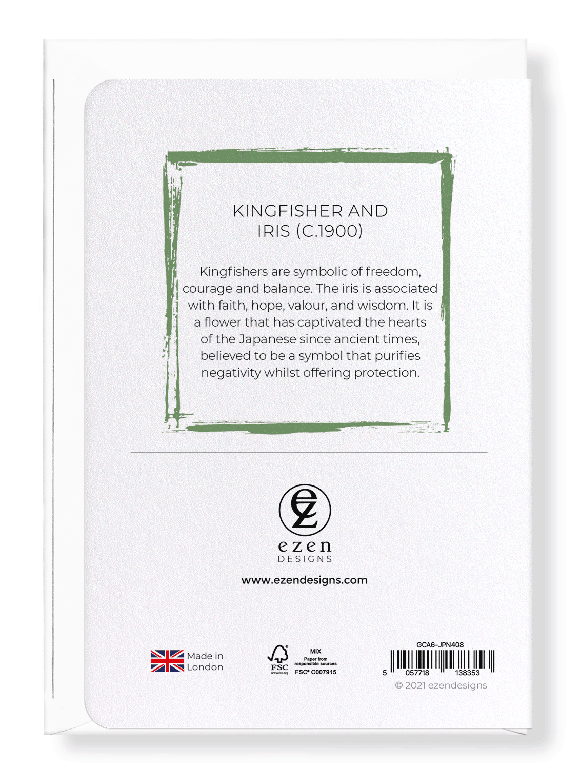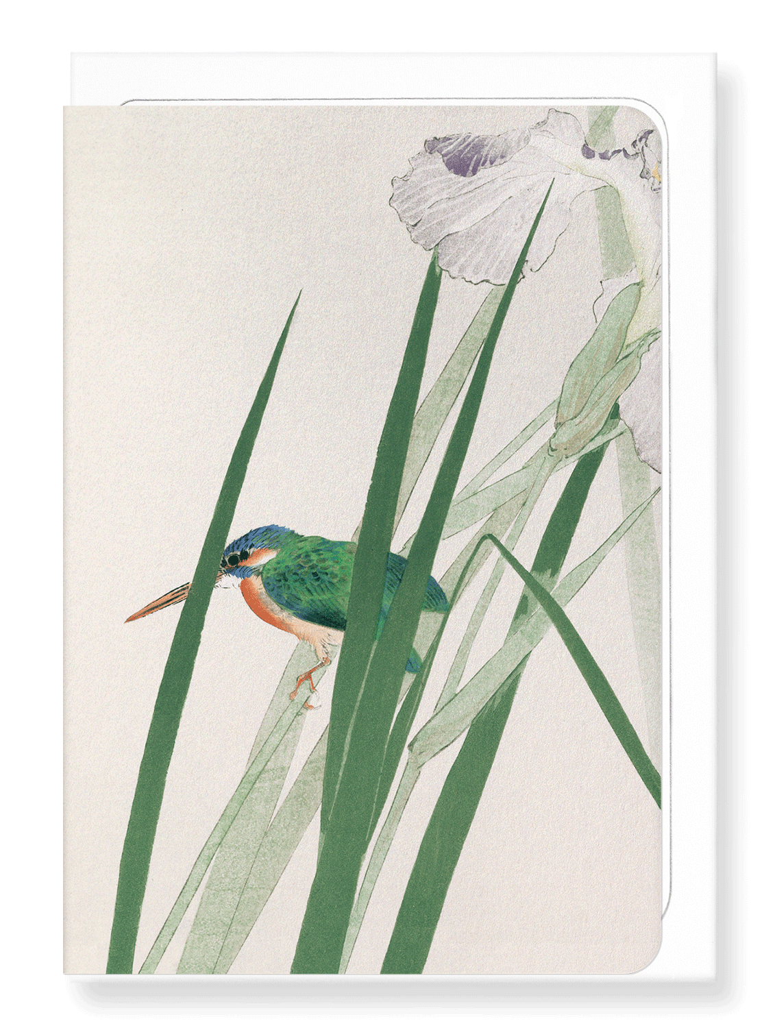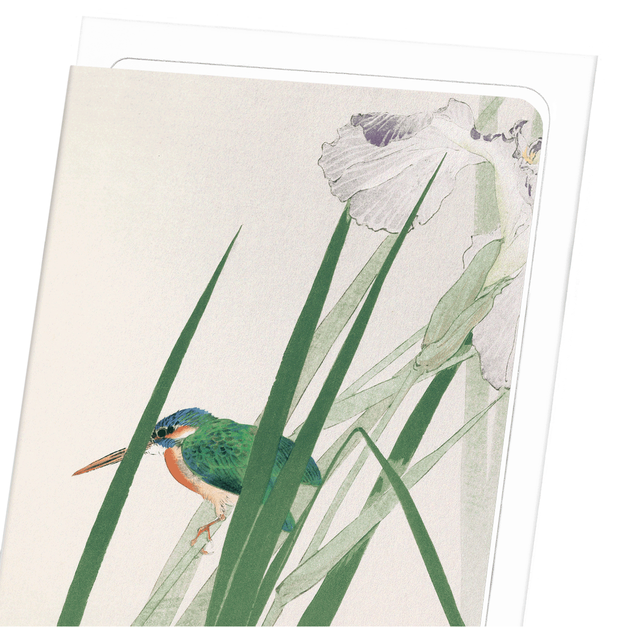 KINGFISHER AND IRIS (C.1900): Japanese Greeting Card