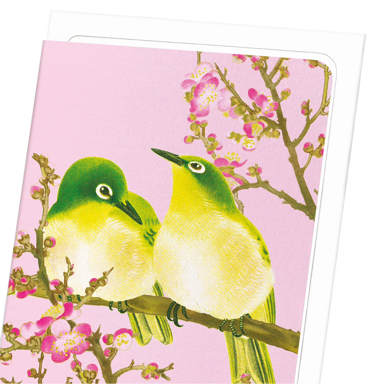 WARBLING WHITE-EYE WITH PLUM BLOSSOMS (C.1930): Japanese Greeting Card