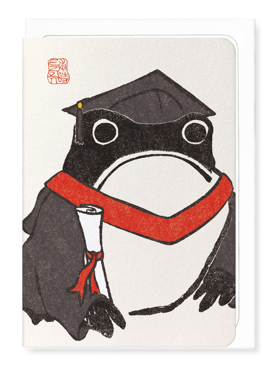 A contemporary Graduation adaptation of a Japanese woodblock print from 1814. The Japanese word for frog is “kaeru”, which can also mean “to return”, so the frog is considered to bring good luck, representing good things returning.