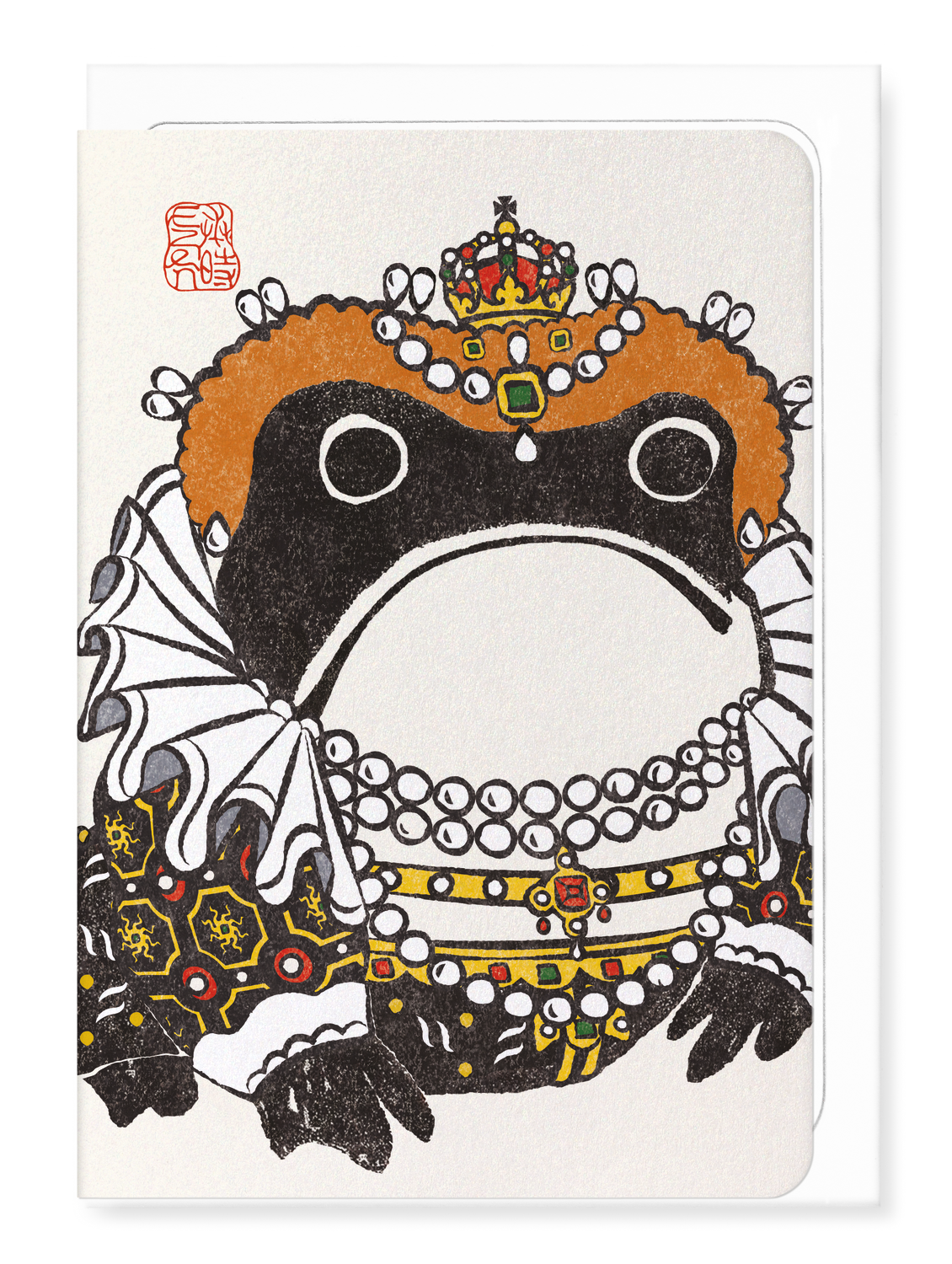 A contemporary Elizabethan adaptation of a Japanese woodblock print from 1814. The Japanese word for frog is “kaeru”, which can also mean “to return”, so the frog is considered to bring good luck, representing good things returning.