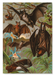 Illustration from Johnson's household book of nature featuring the common bat, vampire bat, dog headed bat, horseshoe bat and Fruit eating bat.