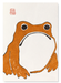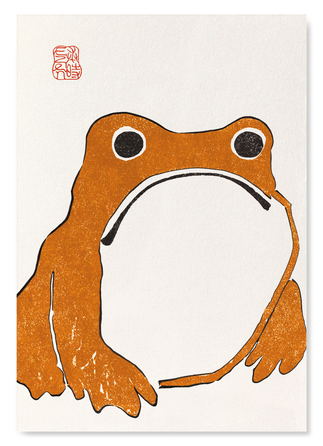 A contemporary orange adaptation of a Japanese woodblock print dating 1814. The Japanese word for frog is “kaeru”, which can also mean “to return”, so the frog is considered to bring good luck, representing good things returning.