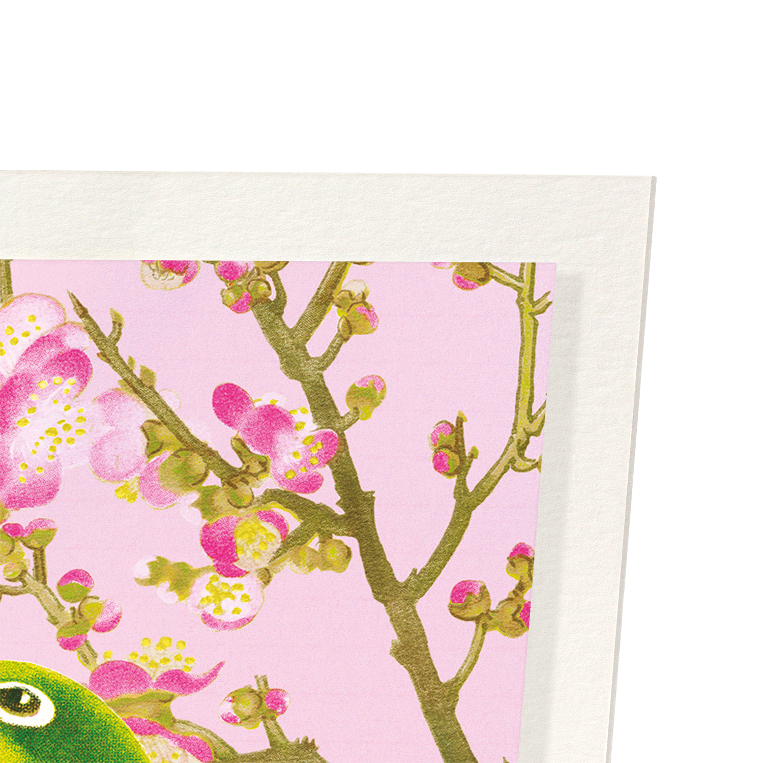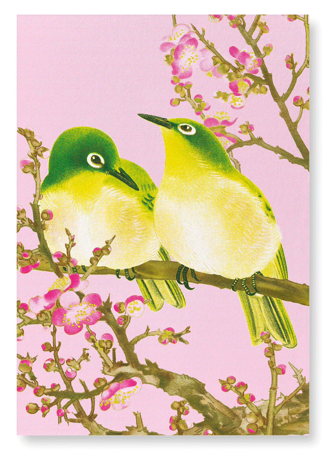 The warbling white-eye is often depicted in Japanese art and symbolises good fortune. Known for their distinctive colours and beautiful, unique song they were historically kept in bird cages.