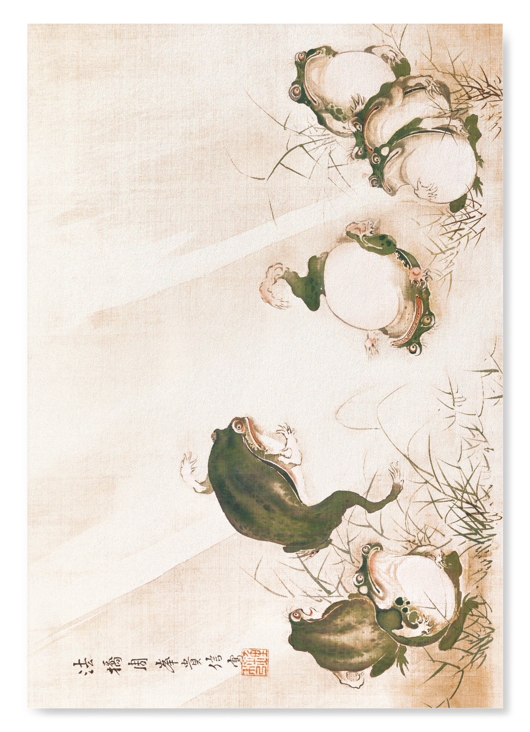 A playful depiction frogs engaged in a sumo match, blending whimsy with tradition. This charming artwork reflects Japan’s love of nature and humour, while also celebrating sumo — a sport deeply rooted in Japanese culture and ceremony.
