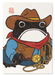A contemporary cowboy adaptation of a Japanese woodblock print dating 1814. The Japanese word for frog is “kaeru”, which can also mean “to return”, so the frog is considered to bring good luck, representing good things returning.