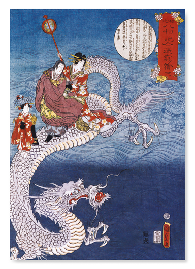 CARP AND WATERFALL: Japanese Art Print