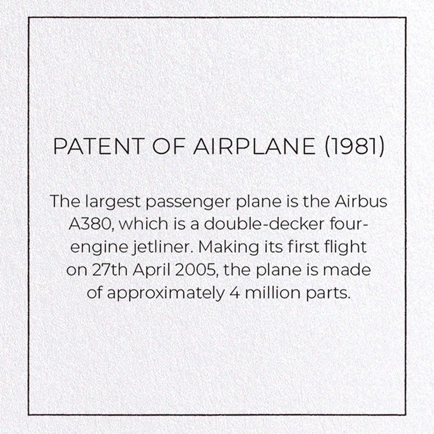 PATENT OF AIRPLANE (1981): Patent Greeting Card