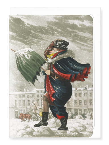 A character near Covent Garden during the festive season, by artist M. Egerton. The original design has the caption ‘A Merry Christmas and a Happy New Year in London’. Covent Garden’s Christmas market served as inspiration for the Charles Dickens' novel 'A Christmas Carol'.