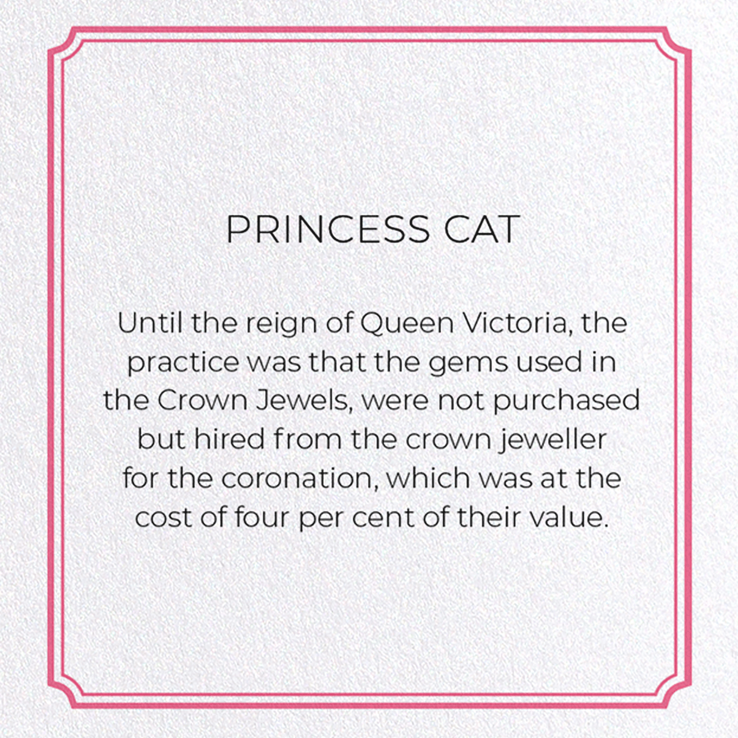 Until the reign of Queen Victoria, the practice was that the gems used in the Crown Jewels, were not purchased but hired from the crown jeweller for the coronation, which was at the cost of four per cent of their value.