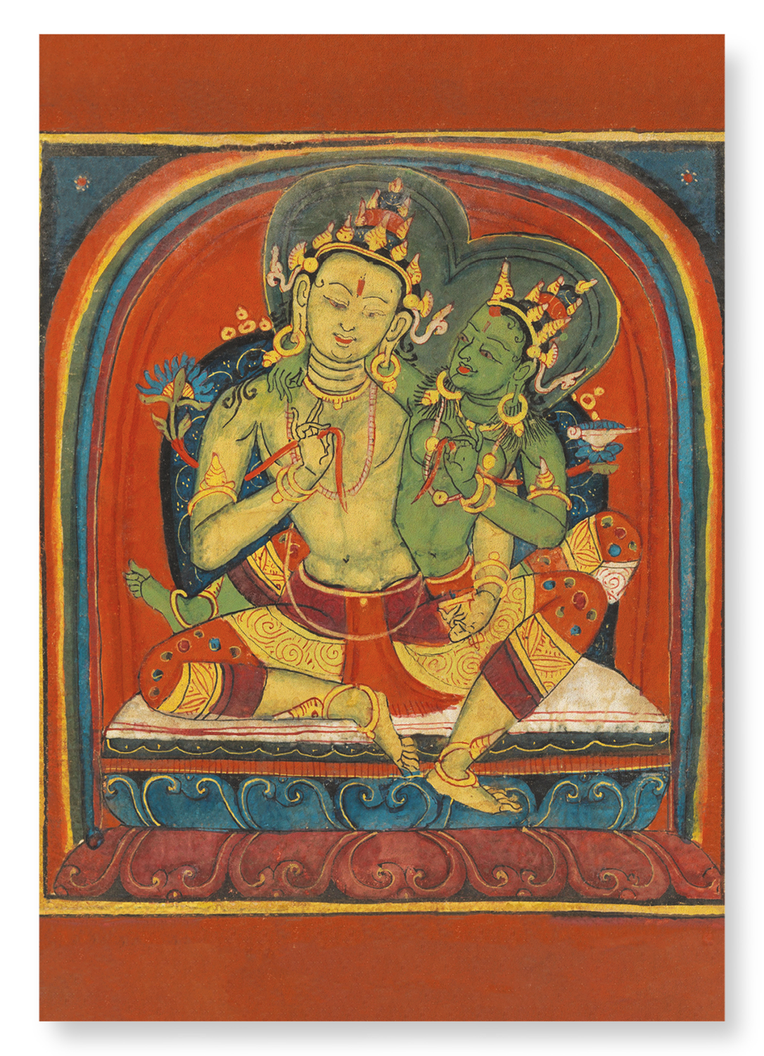 The Tibetan tsakli card portrays a manifestation of Manjushri. A card that belongs to a small sets of paintings (usually anything from 6 to 100) used for rituals in initiations, offerings in temples, training of the Buddhist monks as well as to remove evil influences from a sick person.