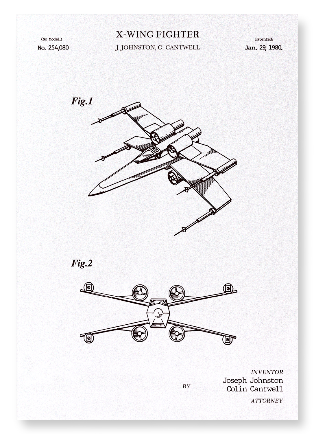 PATENT OF X-WING FIGHTER (1980): Patent Art Print