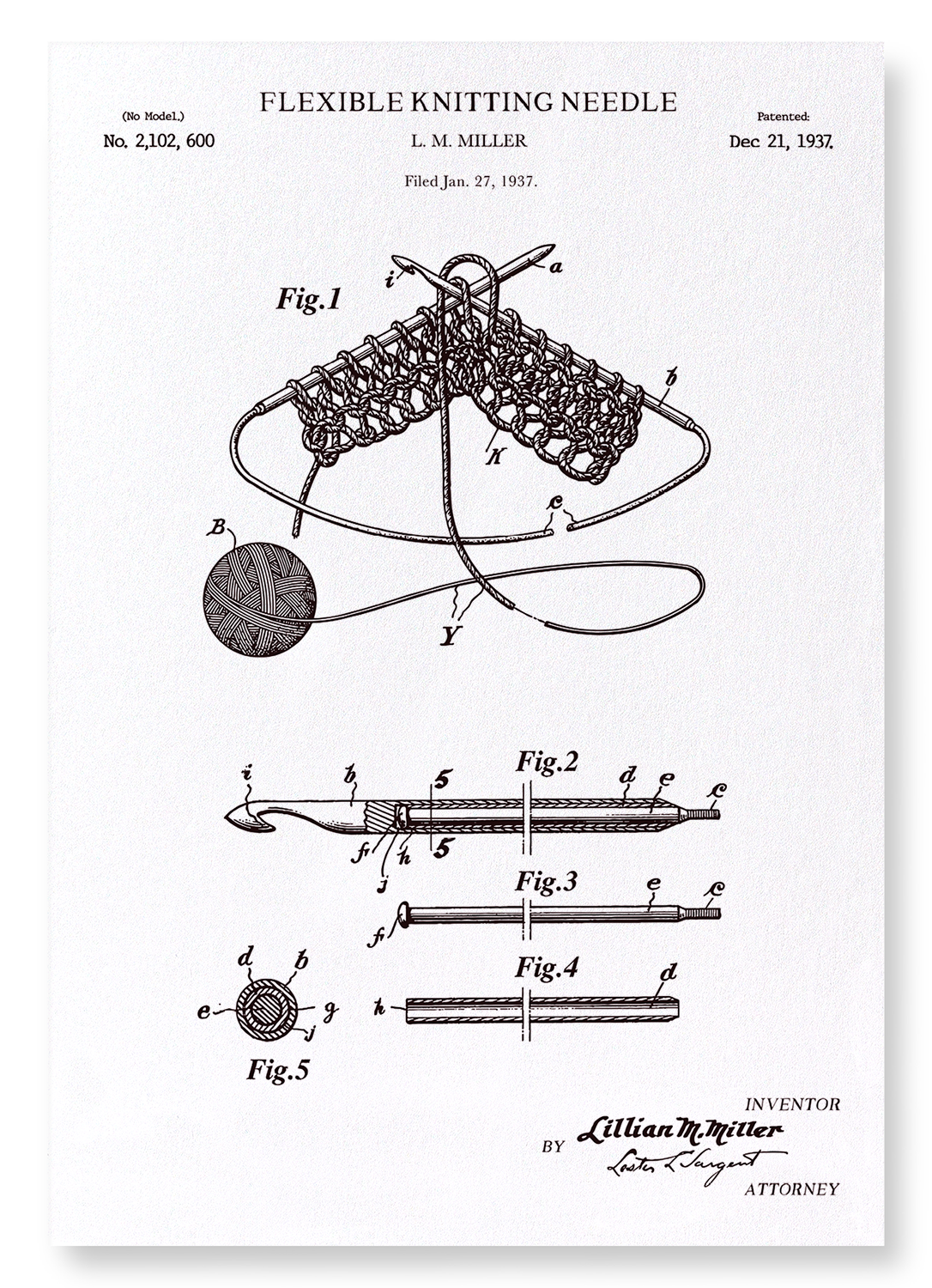 PATENT OF KNITTING NEEDLE (1937): Patent Art Print