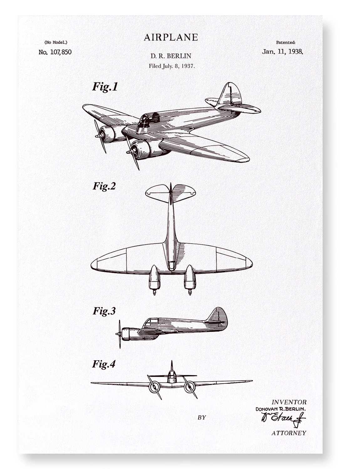 PATENT OF AIRPLANE (1938): Patent Art Print