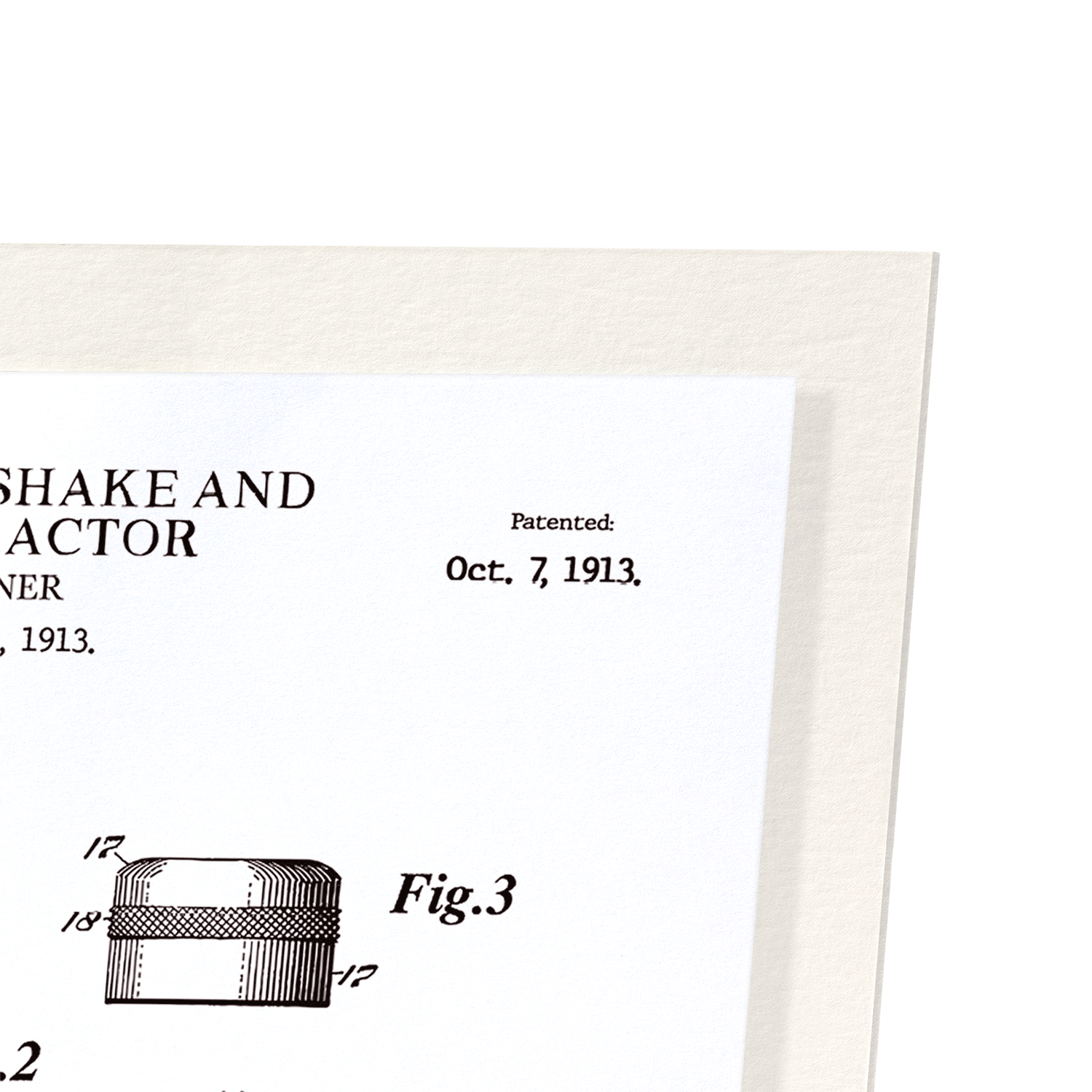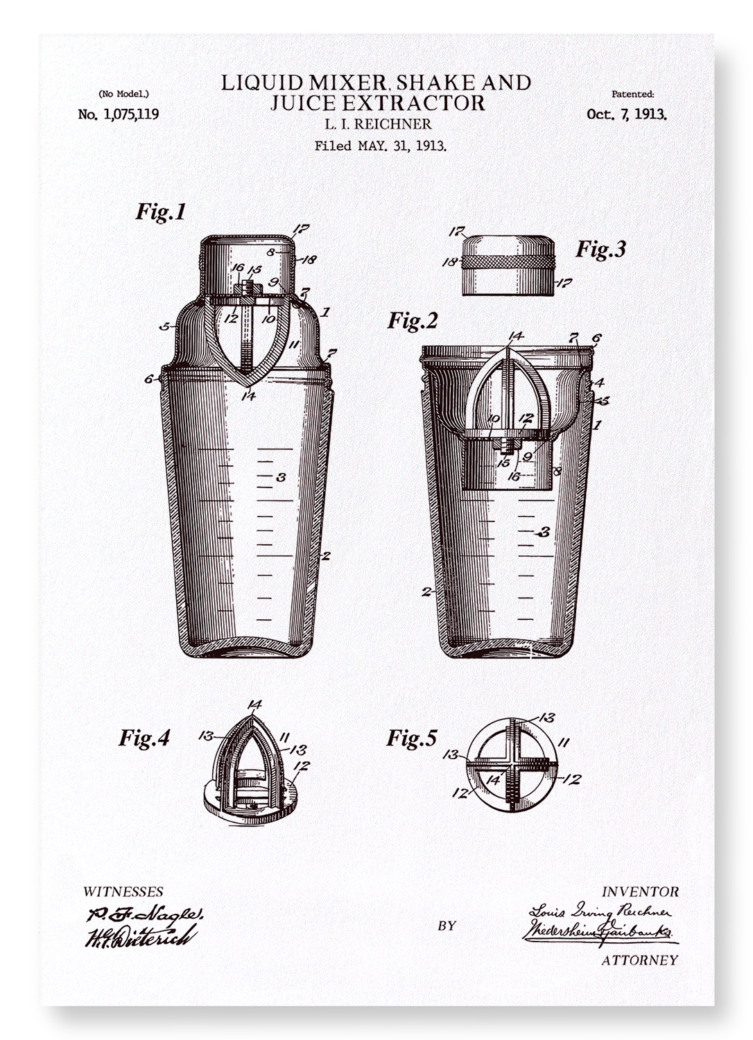PATENT OF LIQUID MIXER, SHAKE & JUICE EXTRACTOR (1913): Patent Art Print
