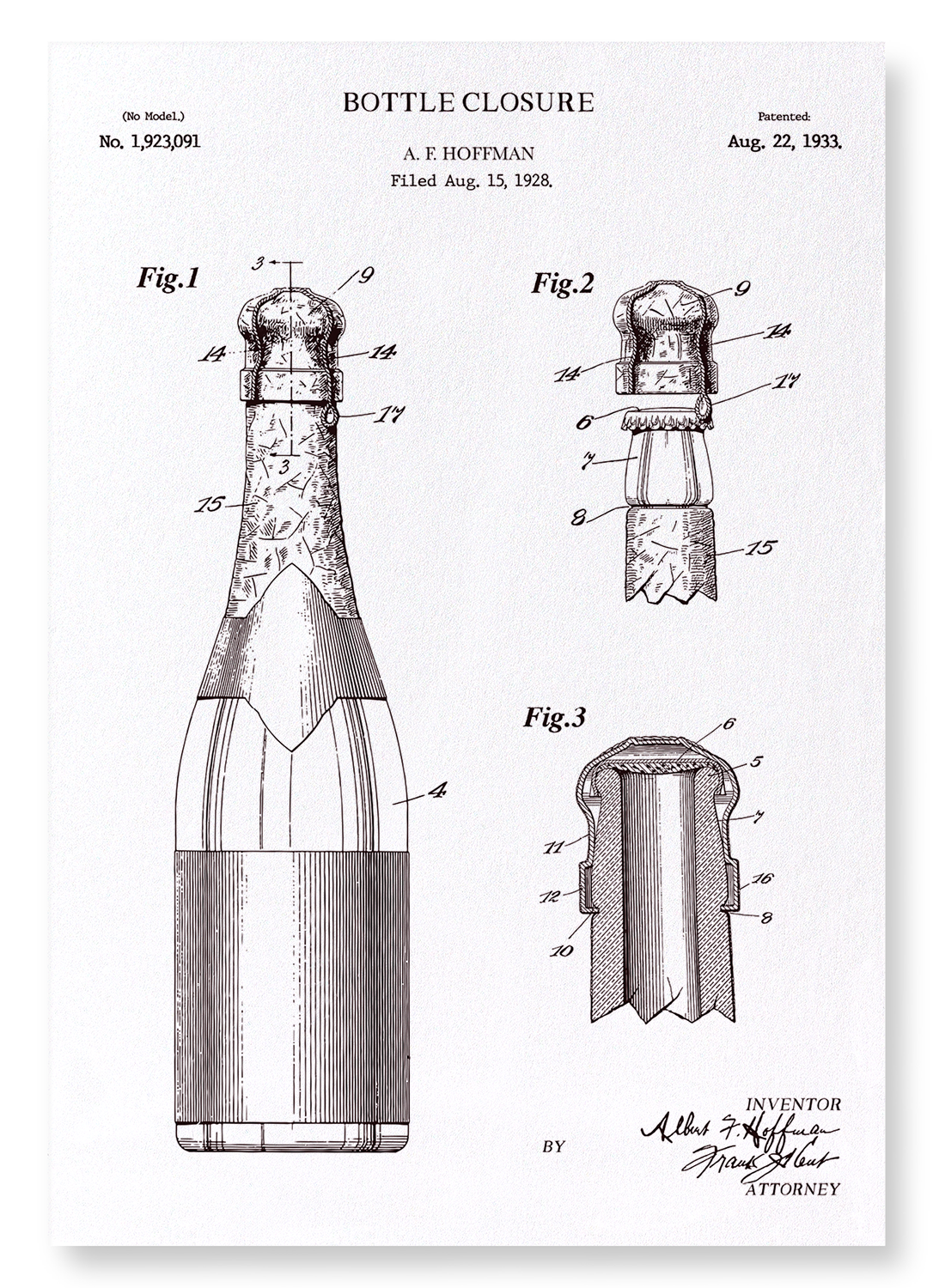 PATENT OF BOTTLE CLOSURE (1933): Patent Art Print