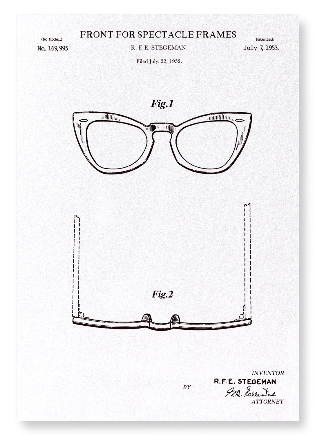 PATENT OF SPECTACLE FRAMES (1953): Patent Art Print