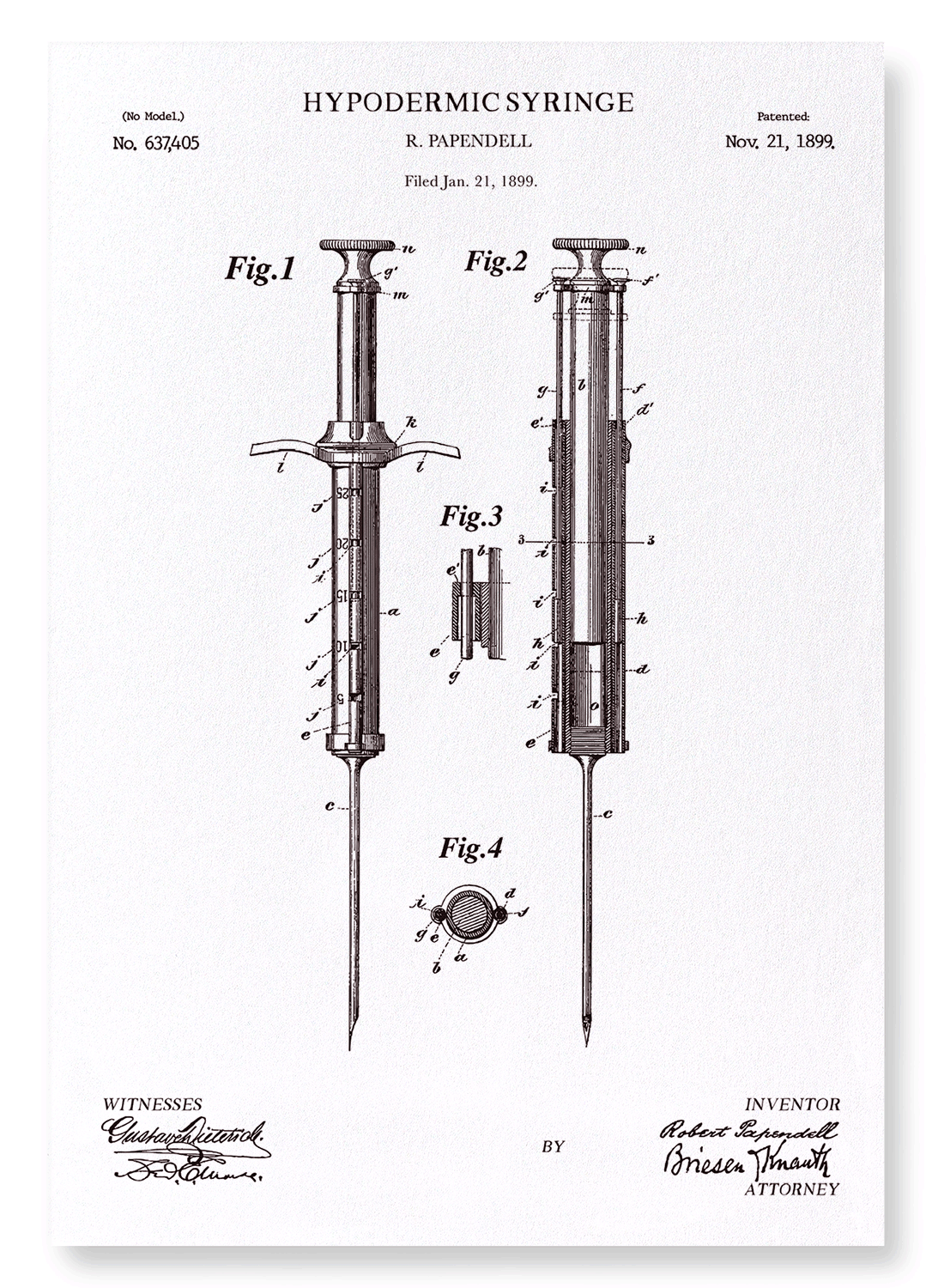 PATENT OF HYPODERMIC SYRINGE (1899): Patent Art Print
