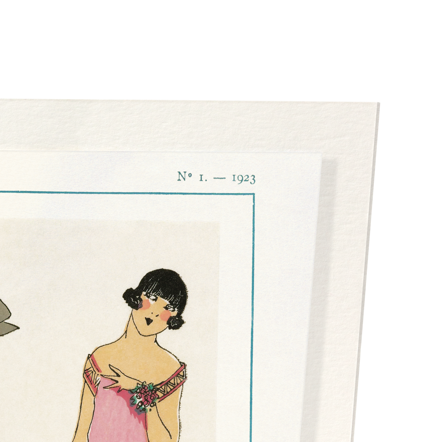 An illustration highlighting the fashion house Prevost, from the magazine Très Parisien, known for its vividly coloured fashion drawings. Each page featured modern, slender models capturing the essence of 1920s French fashion.