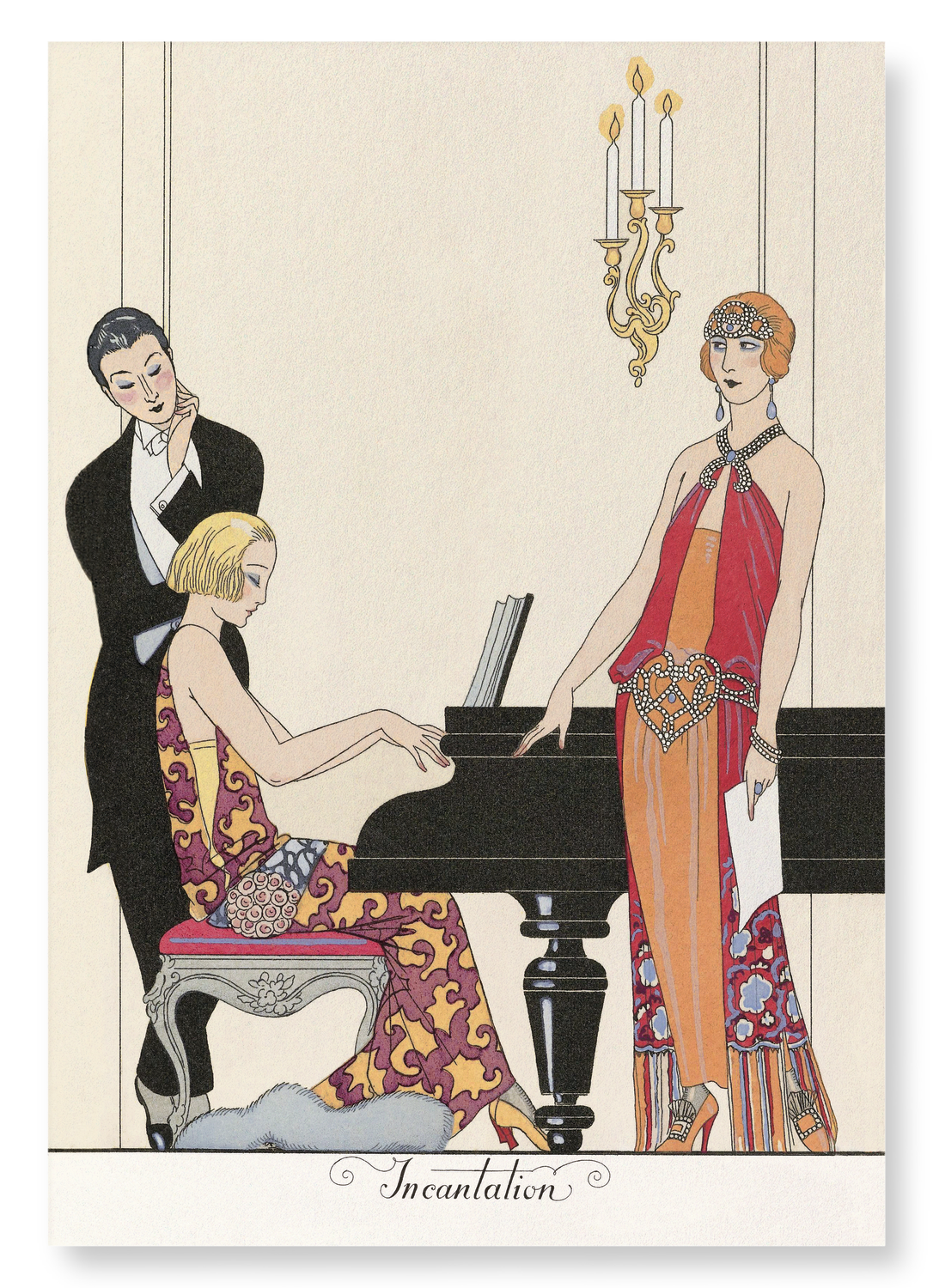Illustration by George Barbier from the series Falbalas & Fanfreluches (1922-1926). This luxuriously produced fashion series showed the latest Parisian trends, unique for their distinctive Art-Deco style, elaborate patterns, and vibrant colors.