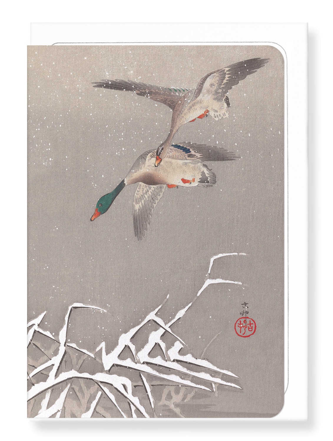 TWO MALLARDS DUCKS IN FLIGHT: Japanese Greeting Card