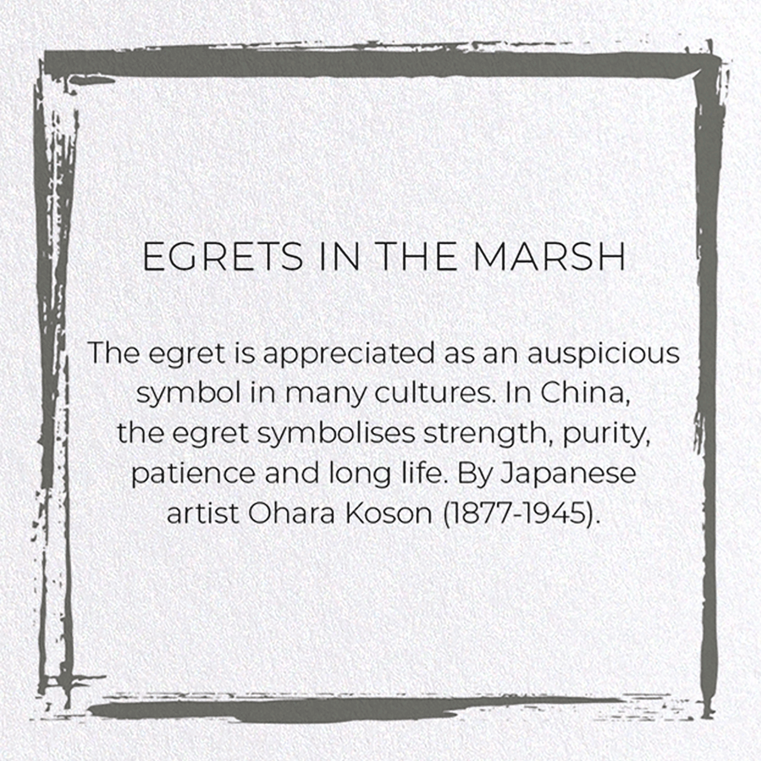 The egret is appreciated as an auspicious symbol in many cultures. In China, the egret symbolises strength, purity, patience and long life. By Japanese artist Ohara Koson (1877-1945).