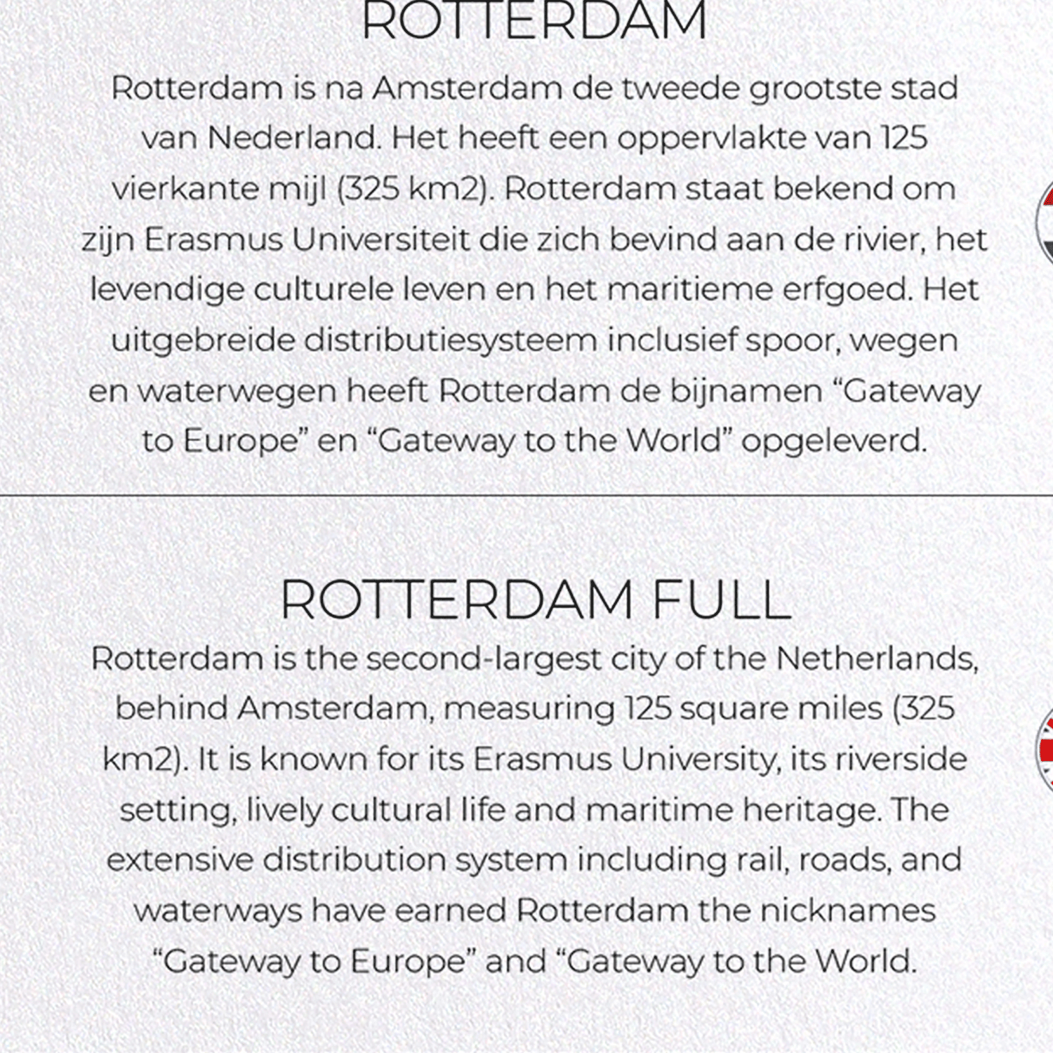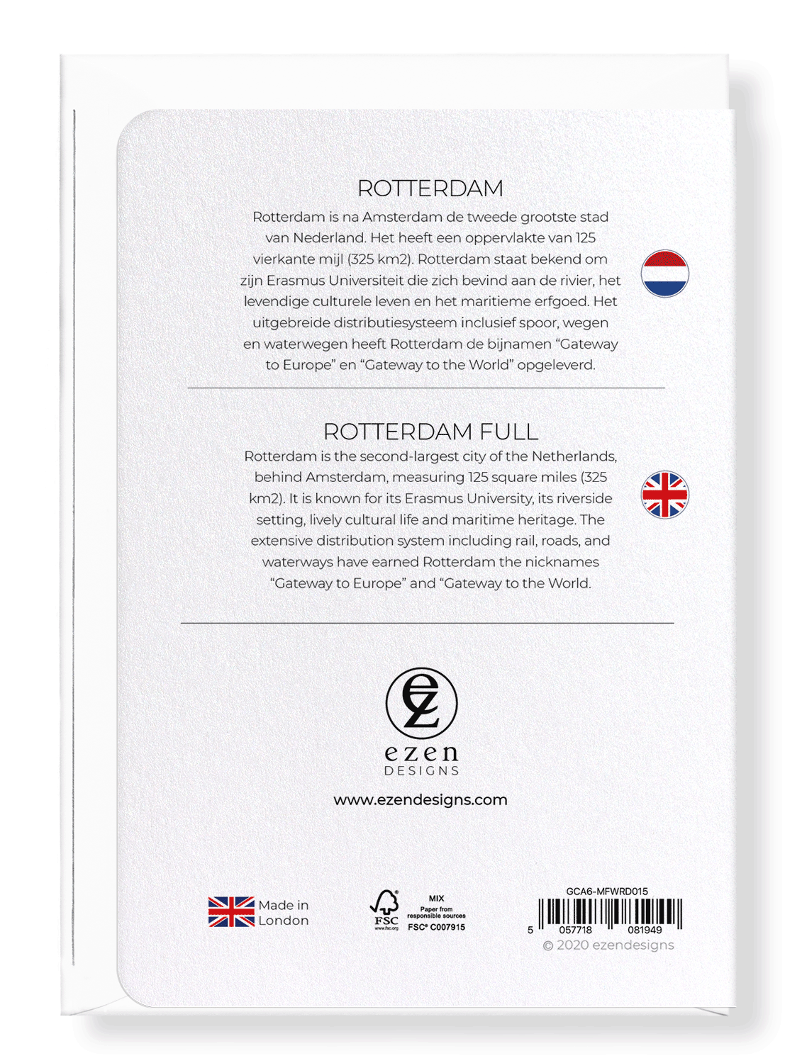 Rotterdam is the second-largest city of the Netherlands, behind Amsterdam, measuring 125 square miles (325 km2). It is known for its Erasmus University, its riverside setting, lively cultural life and maritime heritage. The extensive distribution system including rail, roads, and waterways have earned Rotterdam the nicknames "Gateway to Europe" and "Gateway to the World.